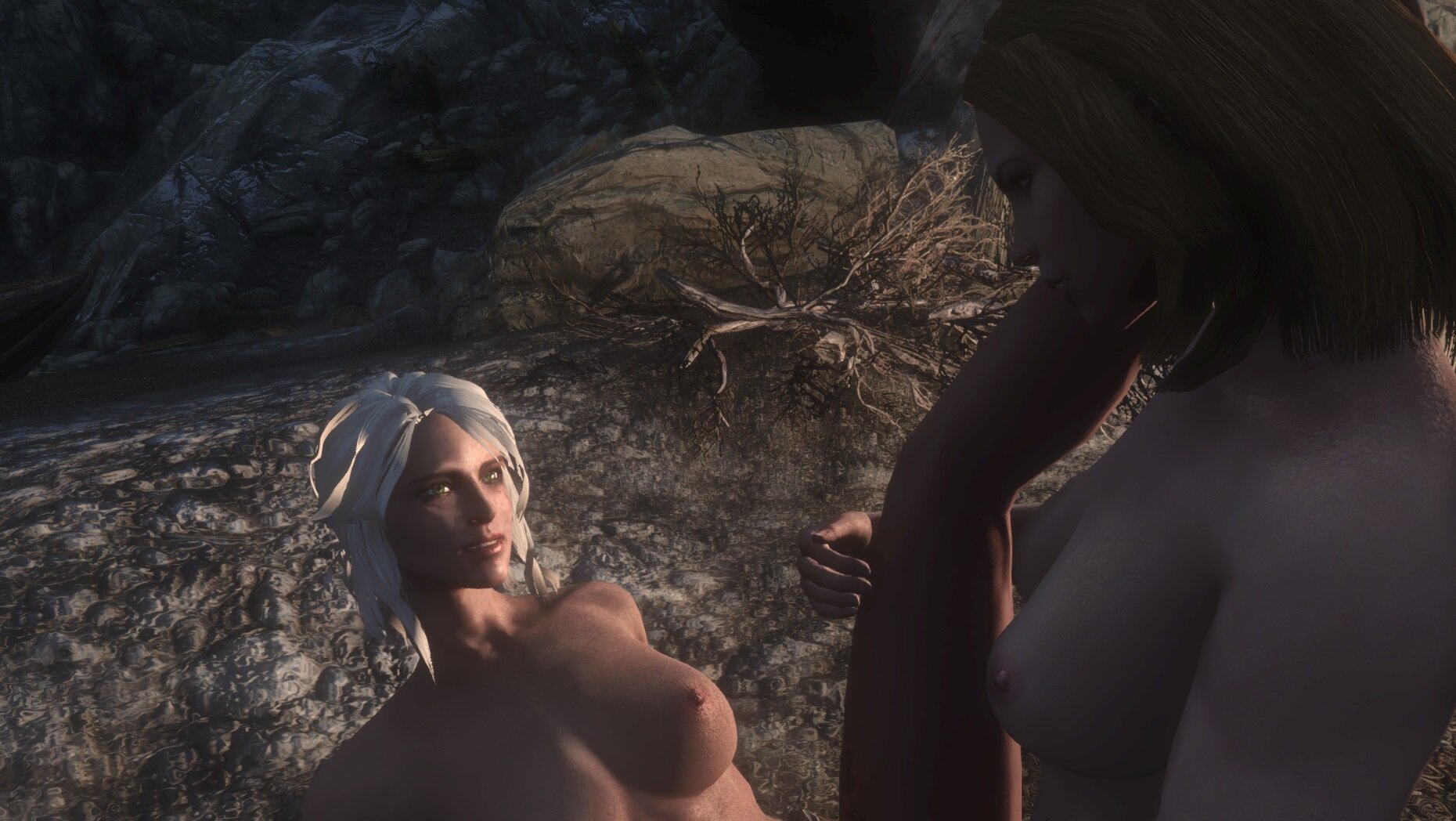 TESV Цири и Йордис греются у костра