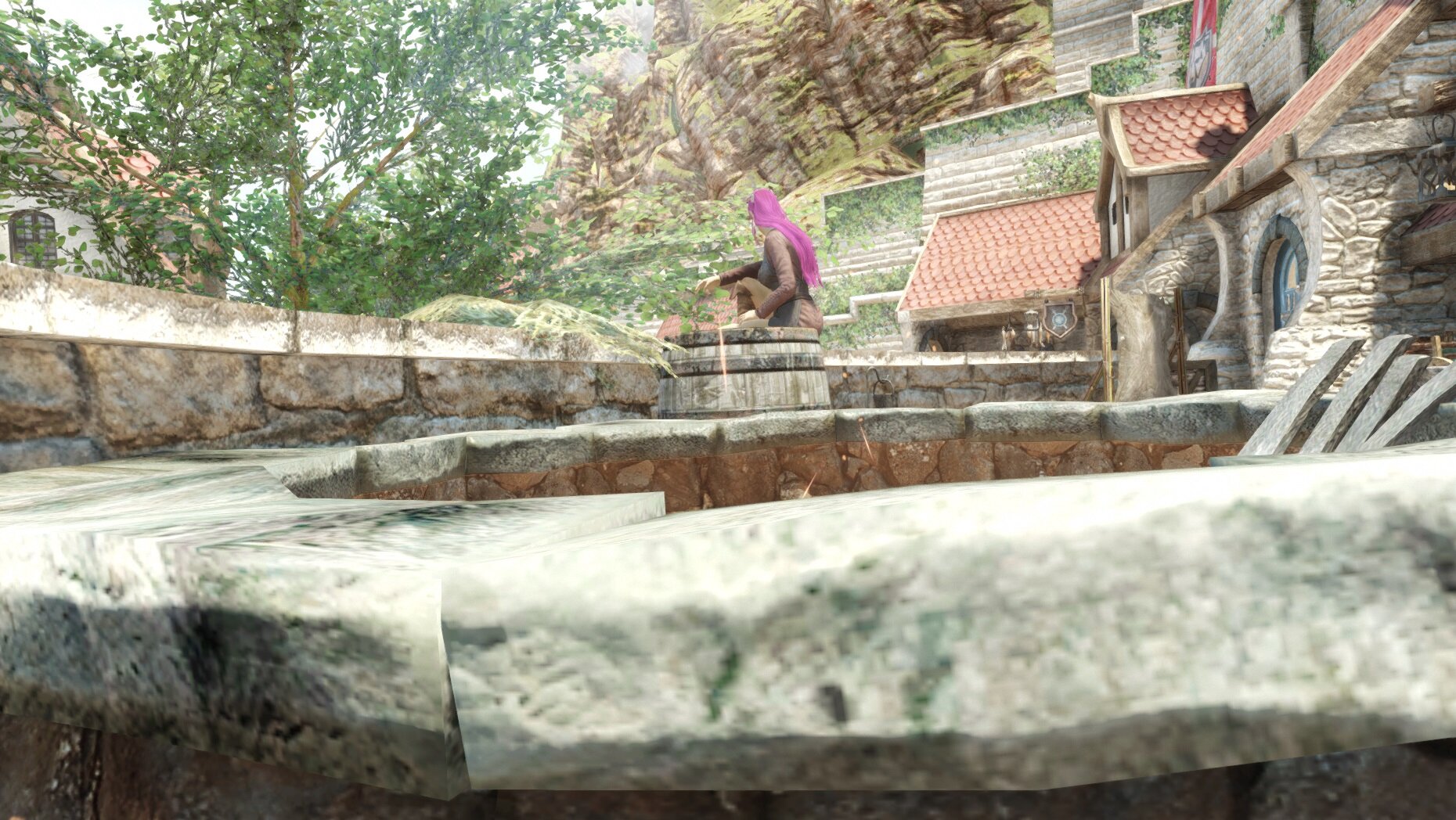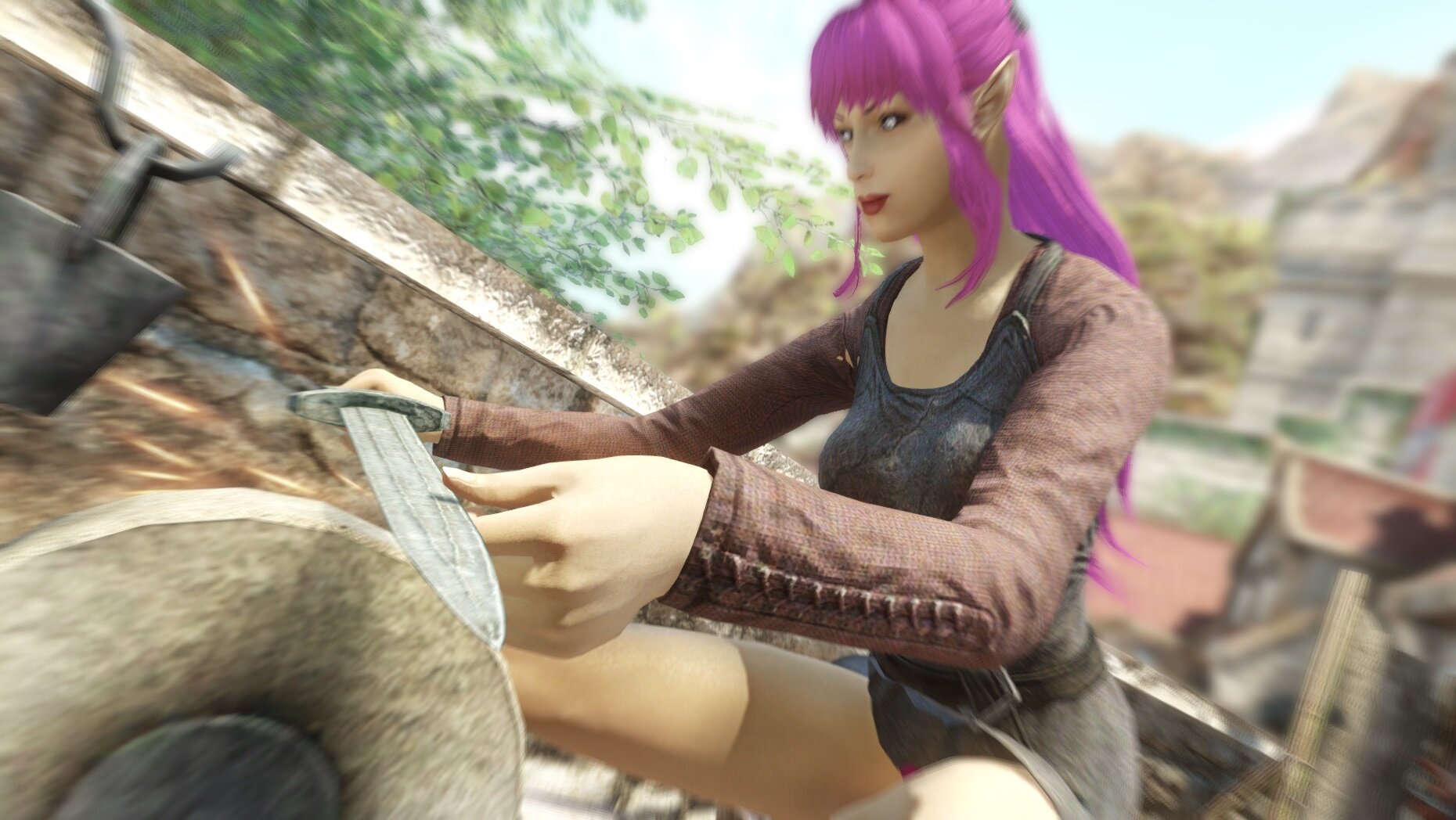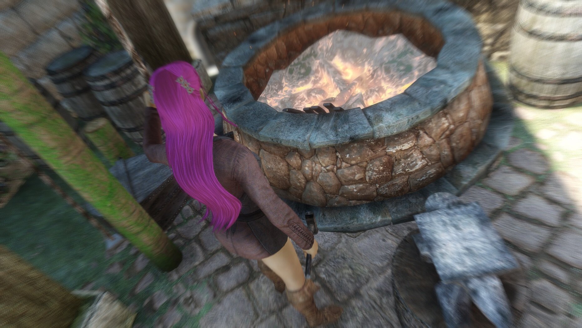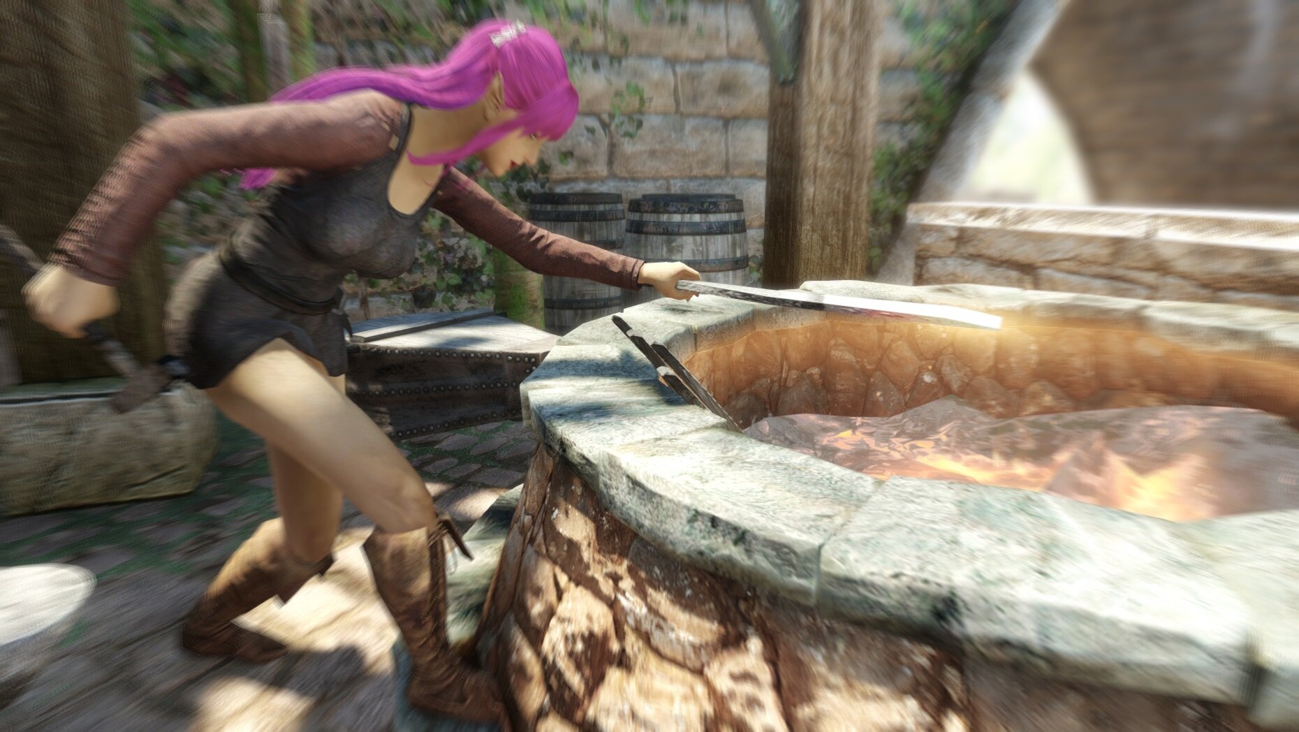 немного поднакопив поехала в Солитьюд и временно занялась кузнечным делом
