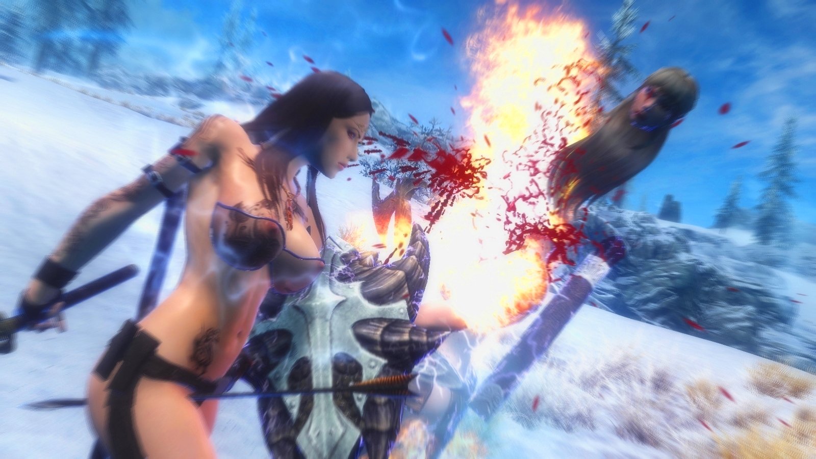 Уже не помню из-за чего весь сыр-бор случился, но подозреваю, что стрела в область паха вампирше обошлась дорого.. (Skyrim)