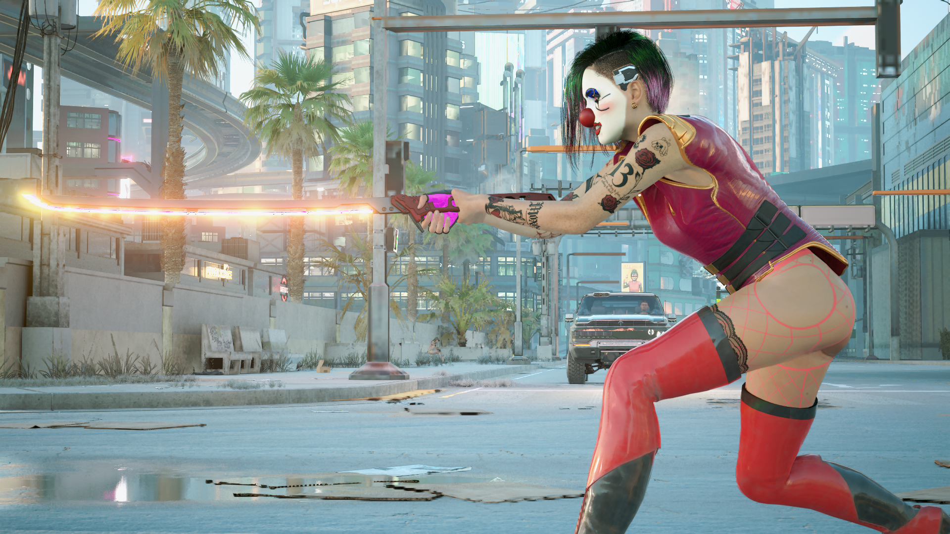 «Злой клоун» со светящейся катаной.