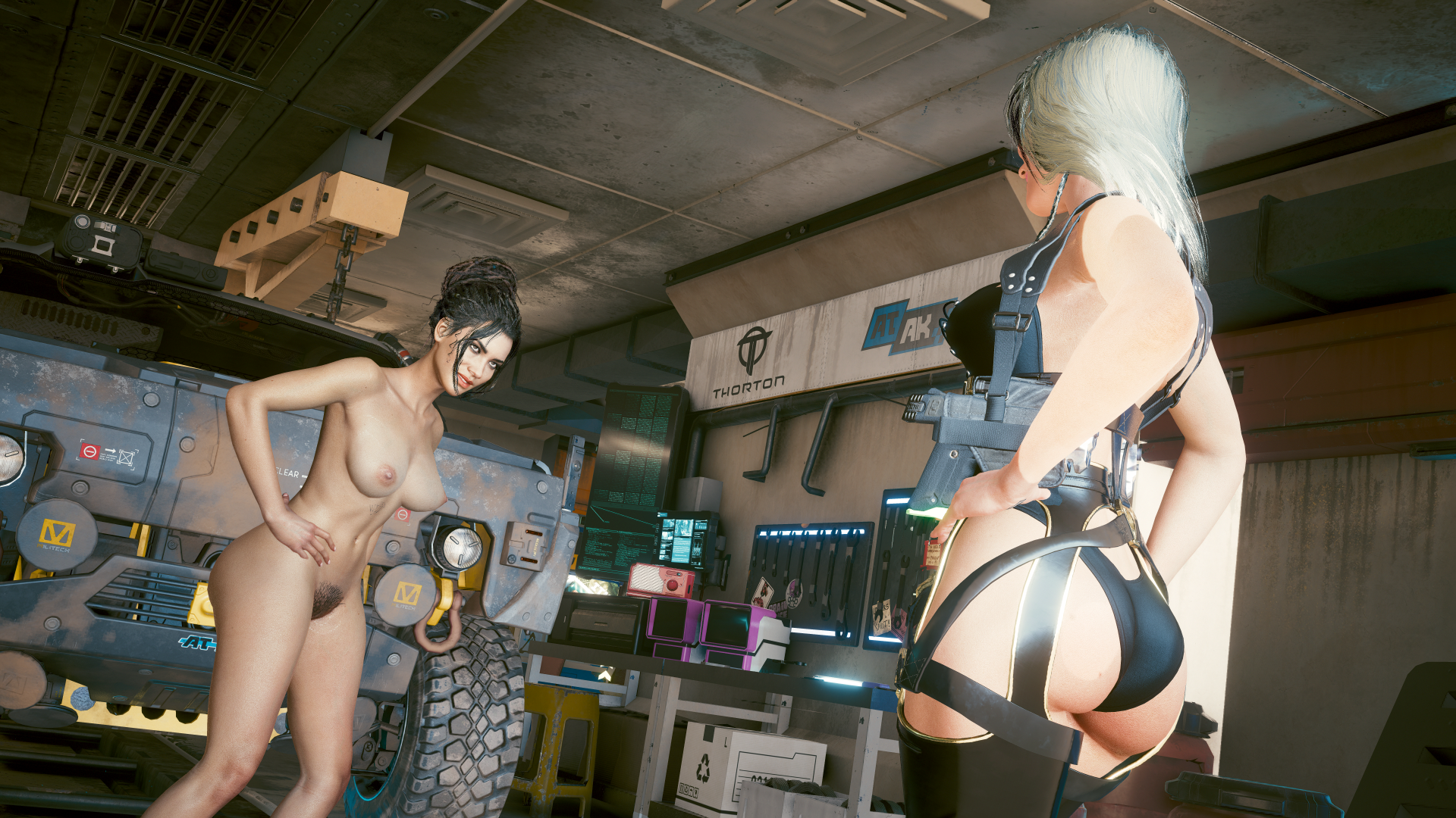 Панам и красотка Ви в гараже у Панам.