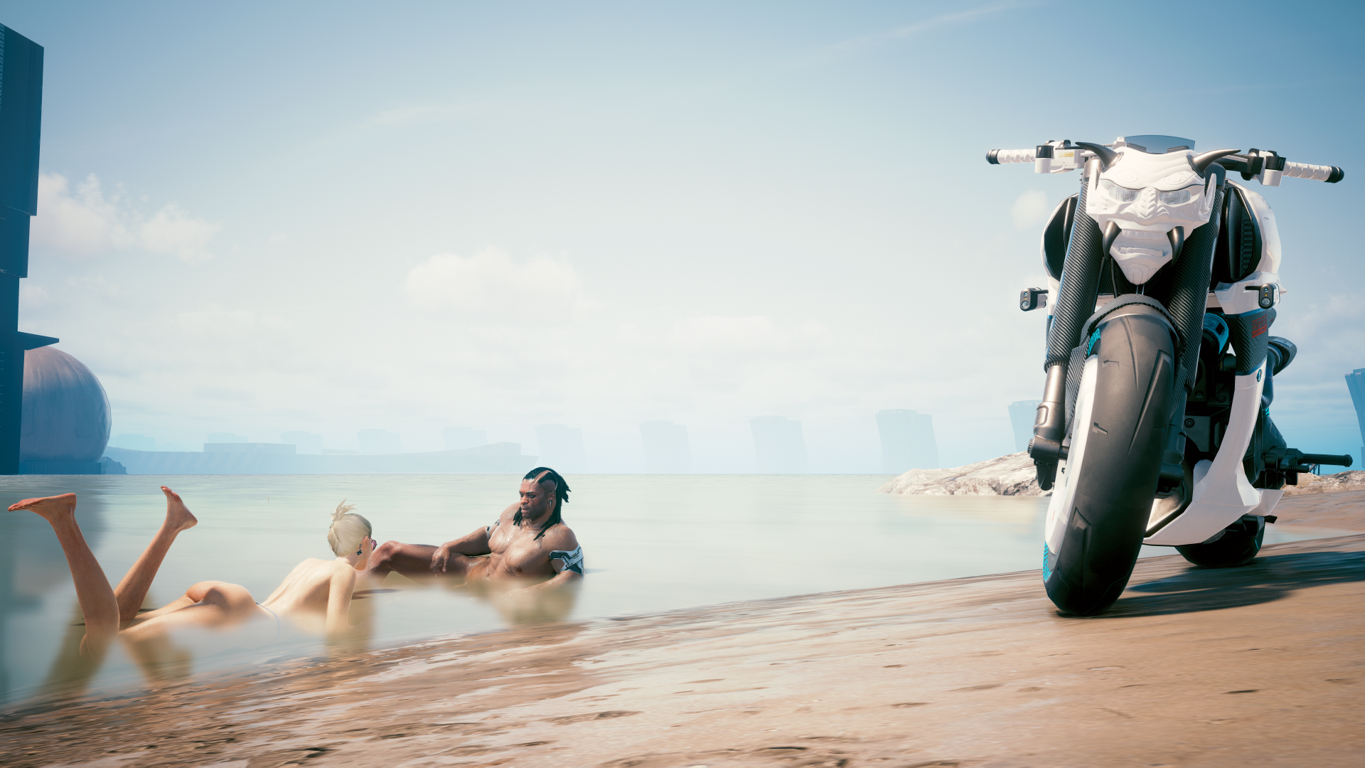 На своём любимом мотоцикле.
