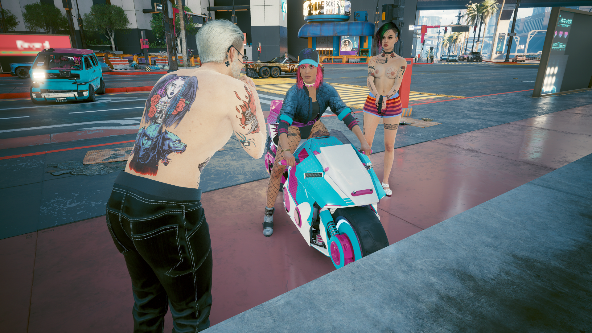 "Удиравшая" на мотоцикле девушка от полицейских на машине, спровоцировала аварию и чуть не сбила Ви и Джуди на набережной. В обновлении 2.0 - Н.П.С. теперь разъезжают и на мотоциклах.