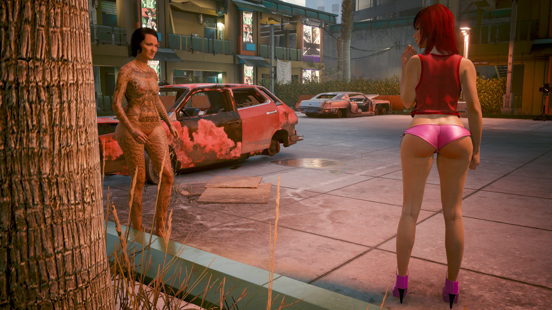Ви и местная ню девушка с татуировками.