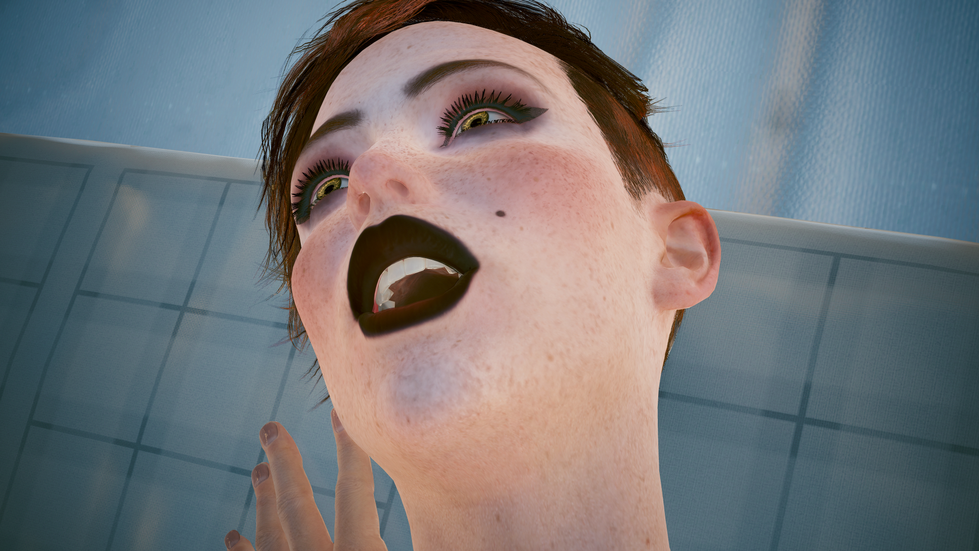 Во время романтического свидания с Ви из мода "Aurore Romanced (Lady Marmalade)". В номере отеля «Тёмная материя».