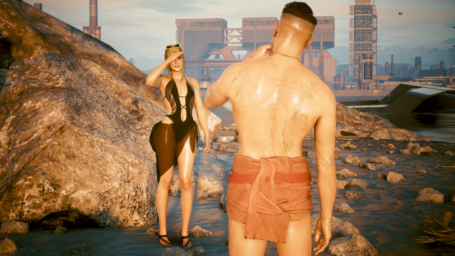 На закате, уходя, с пляжа Ви всё таки удалось познакомиться с мужчиной.