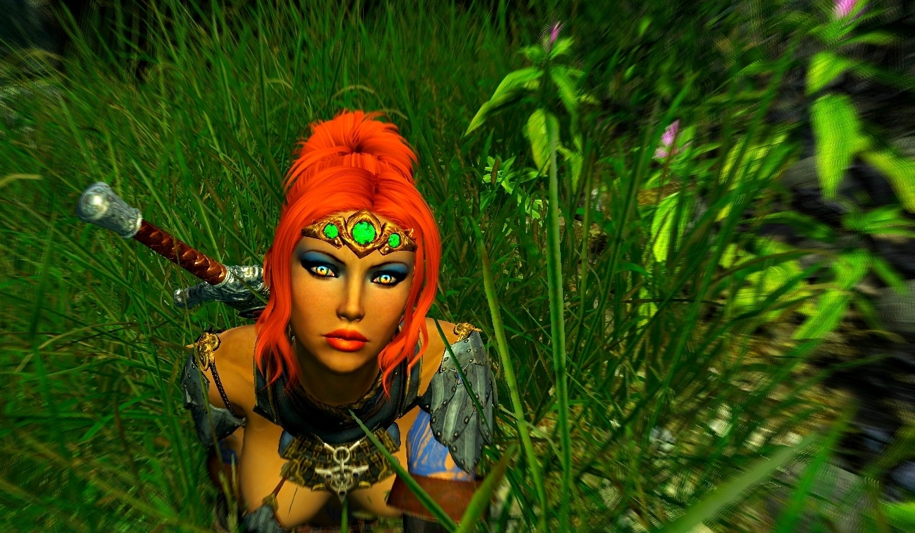 Шэйла отдыхает в травке. Enderal