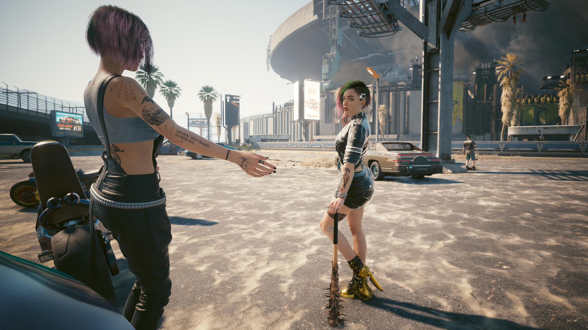 Заплаканная Джуди и Ви с мега-супер прокаченной битой.