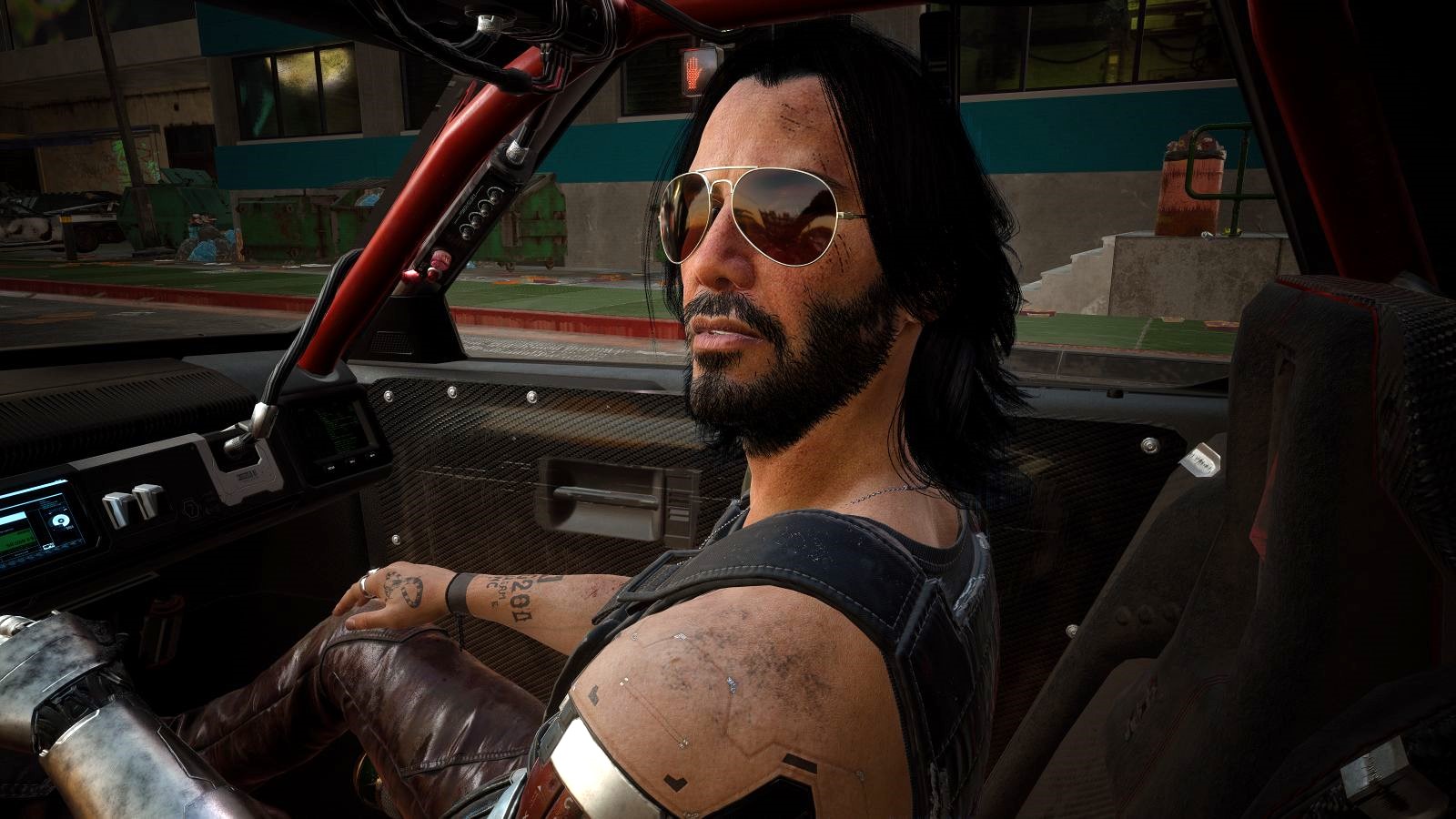 ..в кабине машины, и советует не гонять на скоростях за 130 км/ч ))