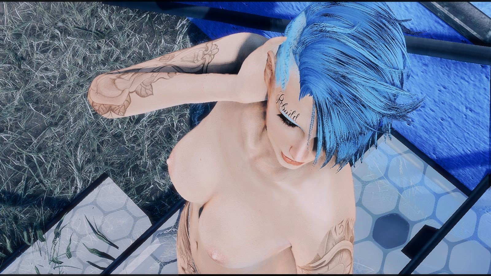 На ступенях бассейна..