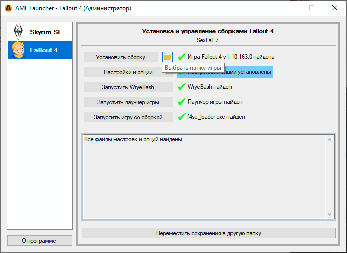 Требуемая версия игры: строго - Fallout 4 - 1.10.163.0 с 6 или 7 DLC. Другие версии несовместимы!