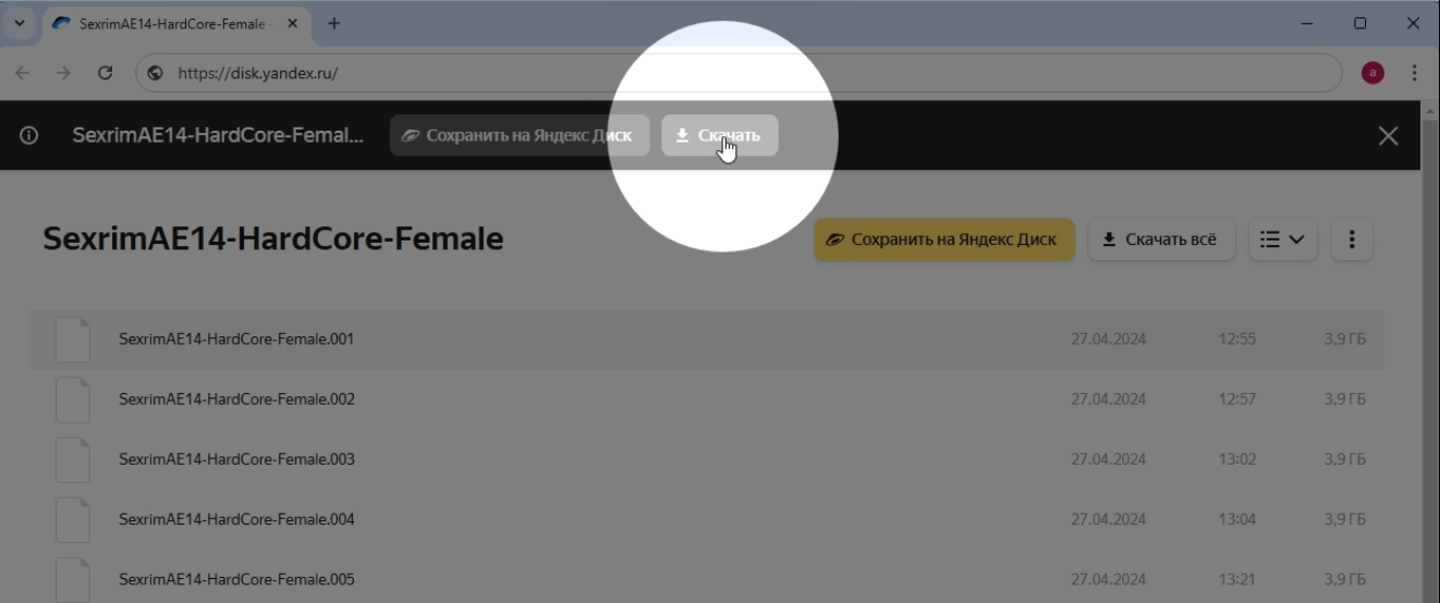 На странице скачивания яндекс диска вы увидите файлы, расположенные в виде списка. Самое главное ни в коем случае не нажимать кнопку "Скачать всё"  и другие элементы вверху над таблицей с файлами.