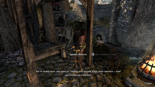 Описание: Бордель Вайтрана. Расположен в отдельной изолированной локации. Вход через диалог с охранником, это орк в лёгком доспехе. Непись расположен нестандартно и найти его смогут не только лишь все. Надо войти в ворота Вайтрана. Возле Пьяного Охотника будет развилка: прямо или налево. Сворачиваем налево. Проходим по ступенькам наверх и сразу направо. Орк-охранник будет стоять, прислонившись к городской стене. Скриншот прилагается. Иногда он бухает в Пьяном Охотнике, тогда надо подождать часок-другой. Дверь в бордель не ищите, её нет. В борделе можно разносить еду и заниматься проституцией. За отдельную плату предложат носить DD ( через диалог надевать хромые платья, армбиндеры, сапожки и перчатки) и запираться в статичные ZAZ-устройства. Доступны оба пола для игры, но я бы рекомендовал за ЖГГ. По крайней мере мод переведён под девицу там, где есть смысл. От переводчика: Мод рабочий, по крайней мере проблем в скриптах не нашёл. Но сам бордель очень тесный, я бы даже сказал минималистичный. Не знаю зачем автор так сделал. О косяках перевода пишите в топике, я поправлю когда наберу достаточно репортов. На ловерсах прилагаются озвучка от xVAsynth и анимации от OAR. Анимации OAR в сборках Отшельника и так стоят, а озвучку от робота я не ставил. -